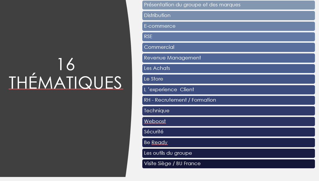 Durant ces journées les participants découvrent le groupe, les marques ainsi que les différents services que nous leur proposons.